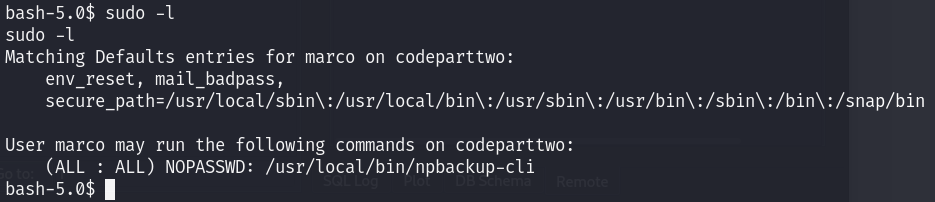 The user marco can run the command /usr/local/bin/npbackup-cli with administrator privileges: