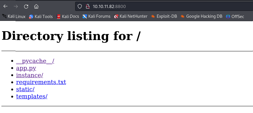 Here I find the same things already seen in the directory listing on http://10.10.11.82:8800/.