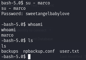 The user marco can run the command /usr/local/bin/npbackup-cli with administrator privileges: